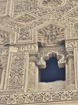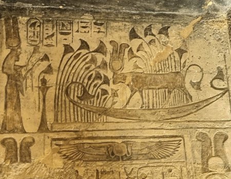 -Temple de Erfoud, pour un dieu. Il reste des plafonds, super gravures (escale du bateau. trajet en calèche)