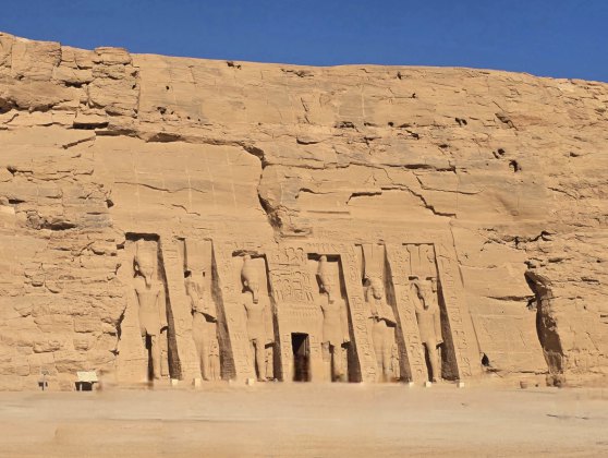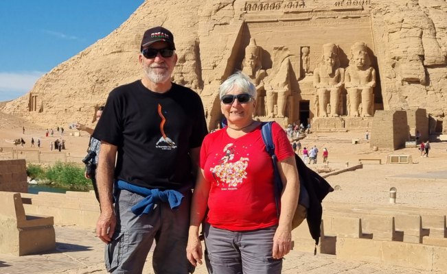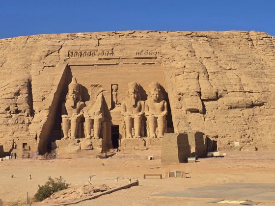 -Temples d'Abou Simbel. Démesure des statues, mais visite très fatigante car 7h de bus dans des conditions peu confortables. (Et on a enchaîné sur un retour au Caire en avion... cassés !)