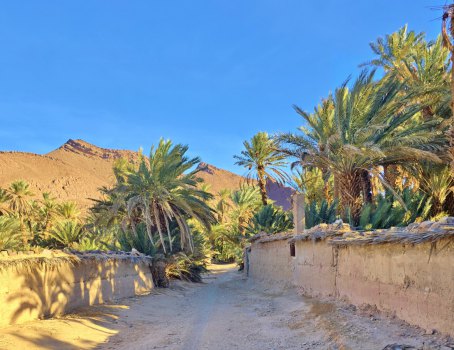 Au pied du Jbel Beni, l’oasis d’Icht est une oasis surprenante au milieu d’un environnement aride, une source coule en permanence et alimente la palmeraie (qui part à l'abandon) et l'eau est potable. Icht est connue pour son village " souterrain" où ne vivent plus que quelques familles. Les maisons en pisé qui demandent beaucoup d'entretien, disparaissent petit à petit. Nous partons à la découverte de ce lieu avec le guide Abdellah.