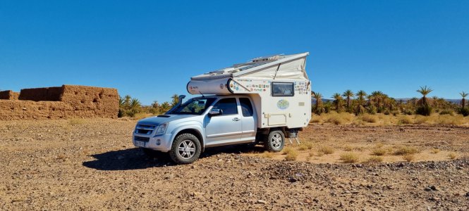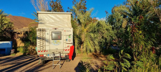 Puis direction Icht où on arrive en début d'après-midi. On s'installe au camping Amerdoul, très joli, très propre. Un moment après, Jean, Marie-Christine et Bernard arrivent. Eux ils suivent le RB 40 de vibraction... ils sont un peu secoués par la piste.