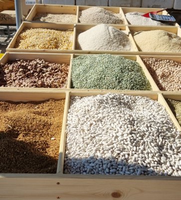 Dans cette ville on veut faire les courses : c'est un peu la misère. Au marché, tout est fermé. Les 2 ou 3 bouchers ont de la viande minable. On trouvera quand même un marchand de fruits et légumes bien achalandé (mais à 9h30, il ouvre juste). Le petit épicier a le sourire, mais doit utiliser sa calculette pour rendre la monnaie.