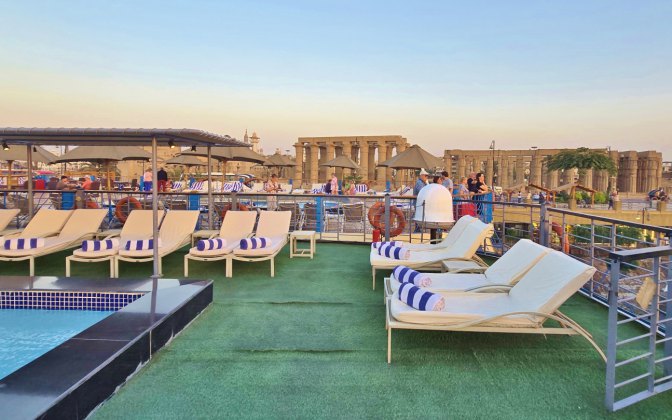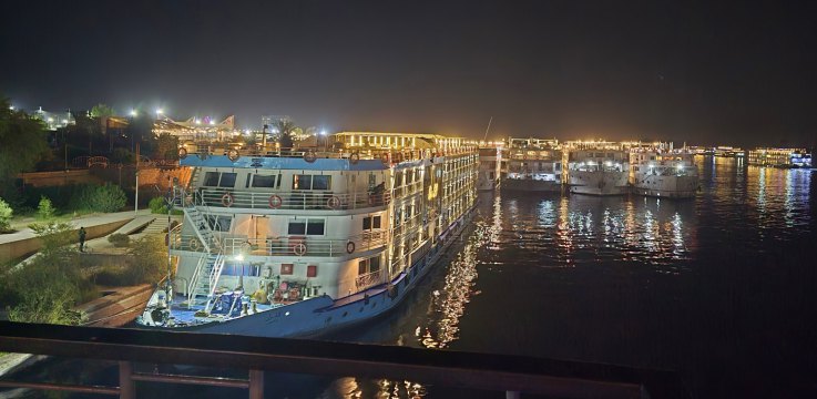 Dans la matinée, le bateau a remonté le Nil, il est amarré quelques kilomètres plus loin avec 12 autres: c'est impressionnant... et laid. On ne voit toujours pas l'extérieur. Toute la nuit, le bateau remontera le Nil jusqu’à Erfoud.