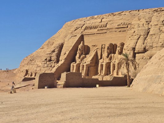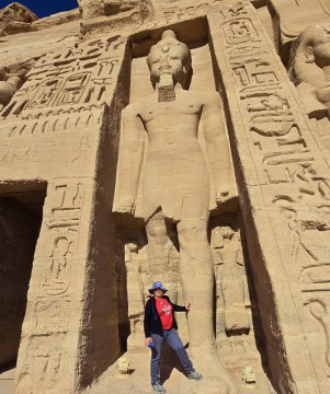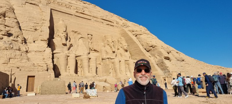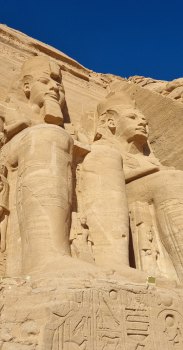 -Temples d'Abou Simbel. Démesure des statues, mais visite très fatigante car 7h de bus dans des conditions peu confortables. (Et on a enchaîné sur un retour au Caire en avion... cassés !)