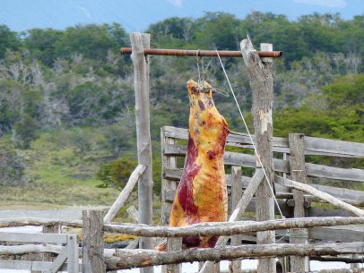 Puis les forêts grandissent, les montagnes apparaissent au loin, couvertes de névés. Nous arrivons à Tolhuin, où nous nous dirigeons au bord du lac. Nous allons au camping pour être abrités du vent et profiter de la douche chaude. Le lieu a tout pour plaire : la vue, la conception des équipements (des sortes de tipis en bois pour mettre les toiles de tente et cabanes pour cuisiner ou manger), seul bémol, un peu à la marocaine, tout est mal entretenu ! C’est bercés par les vagues (sur le lac) et avec la vue sur les montagnes que nous nous endormons.