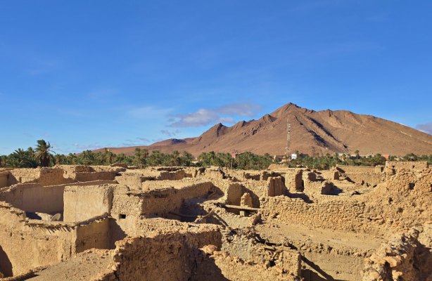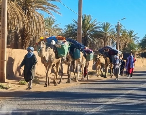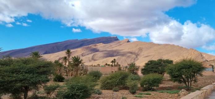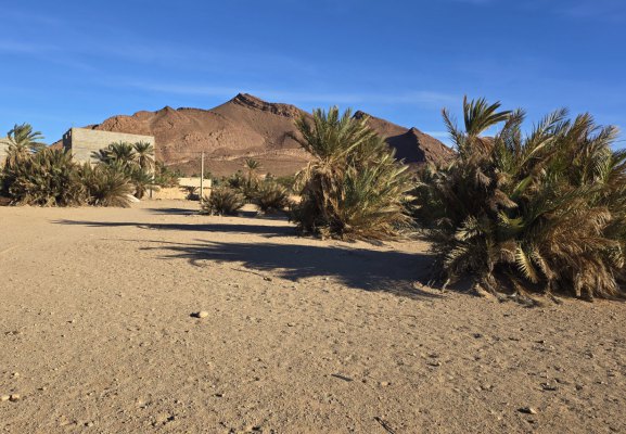 Au pied du Jbel Beni, l’oasis d’Icht est une oasis surprenante au milieu d’un environnement aride, une source coule en permanence et alimente la palmeraie (qui part à l'abandon) et l'eau est potable. Icht est connue pour son village " souterrain" où ne vivent plus que quelques familles. Les maisons en pisé qui demandent beaucoup d'entretien, disparaissent petit à petit. Nous partons à la découverte de ce lieu avec le guide Abdellah.