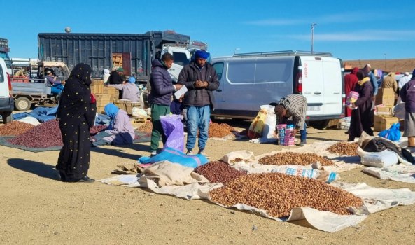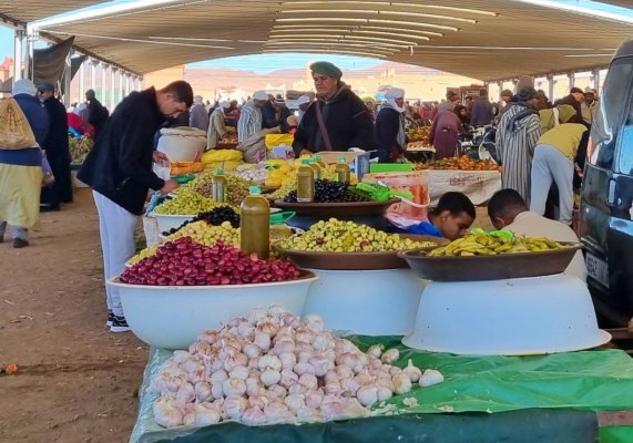 Zagora est devenue une ville moderne, le long de la rue principale les bâtiments sont neufs, bien entretenus. A l'entrée de la ville, un lieu attire la foule : c'est le souk. On y trouve de tout: d'abord des dattes de toutes les sortes (sèches, pâteuses, en vrac, en boîtes....) des melhfas ( grande pièce de tissu, de 4 à 5 mètres de long, que la femme enroule autour de son corps et fixe aux épaules avec des fibules), de la lessive avec du thé et de l'huile, des djellabas chaudes, des épices, des produits pour l'agriculture (plastiques, semences, sacs, outils....), de la quincaillerie, des bijoux berbères, des fruits et légumes. C'est animé, coloré, authentique.