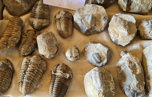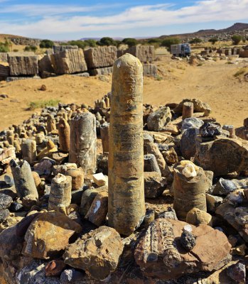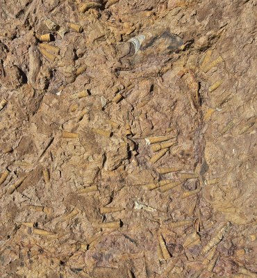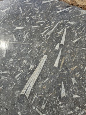 En début d'après-midi, on remonte encore plus dans le temps, à la carrière d'orthoceres(30.76371° N, 5.45731° W ). Dans ce site, accompagnés par Karim, nous découvrons ces fossiles de mollusques, les techniques d'extraction et les débouchés de ce marbre. Le problème c'est qu'il est travaillé à Erfoud, à 200 kms de là.